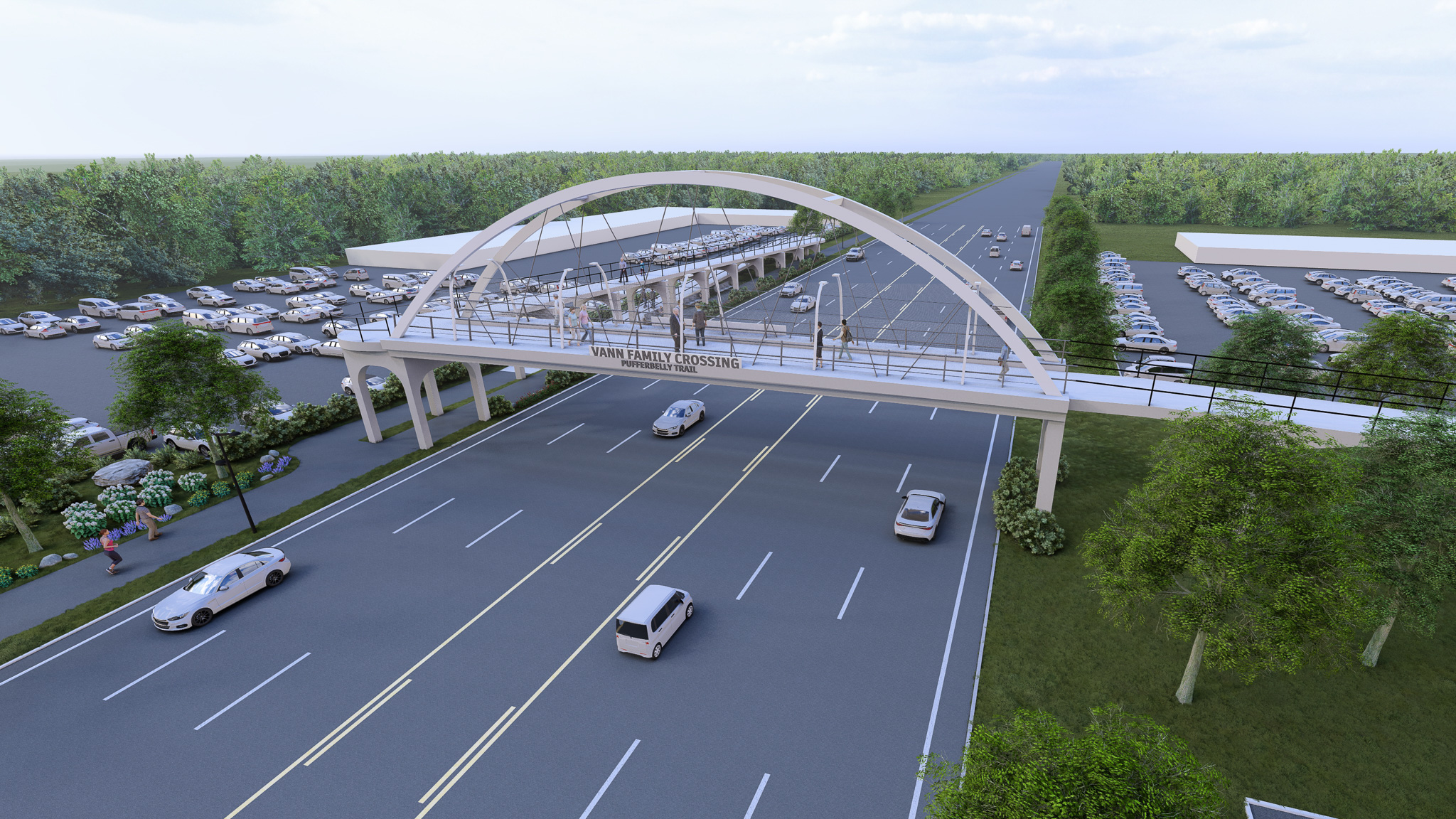 This morning, Mayor Sharon Tucker, alongside Fort Wayne Trails Executive Director Kent Castleman, announced a $5M gift from the Vann Family Foundation to assist in funding a new pedestrian bridge over Coliseum Blvd. for the Pufferbelly Trail. The bridge will be known as the Vann Family Crossing.