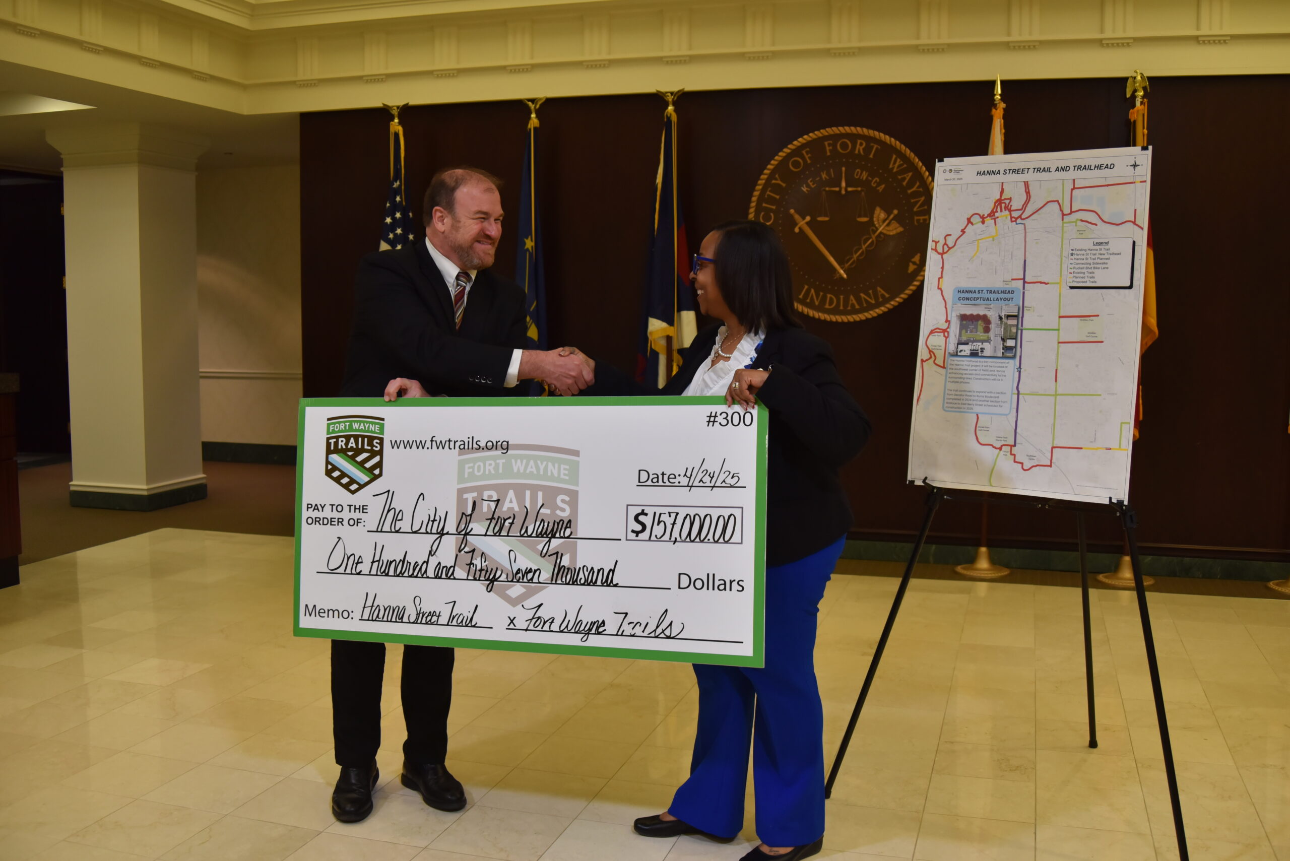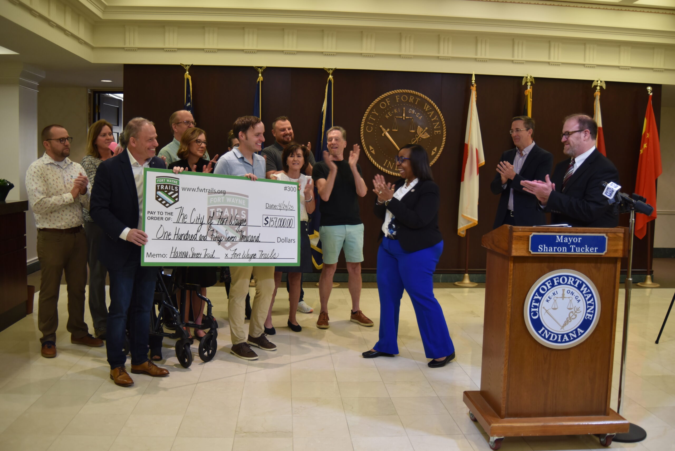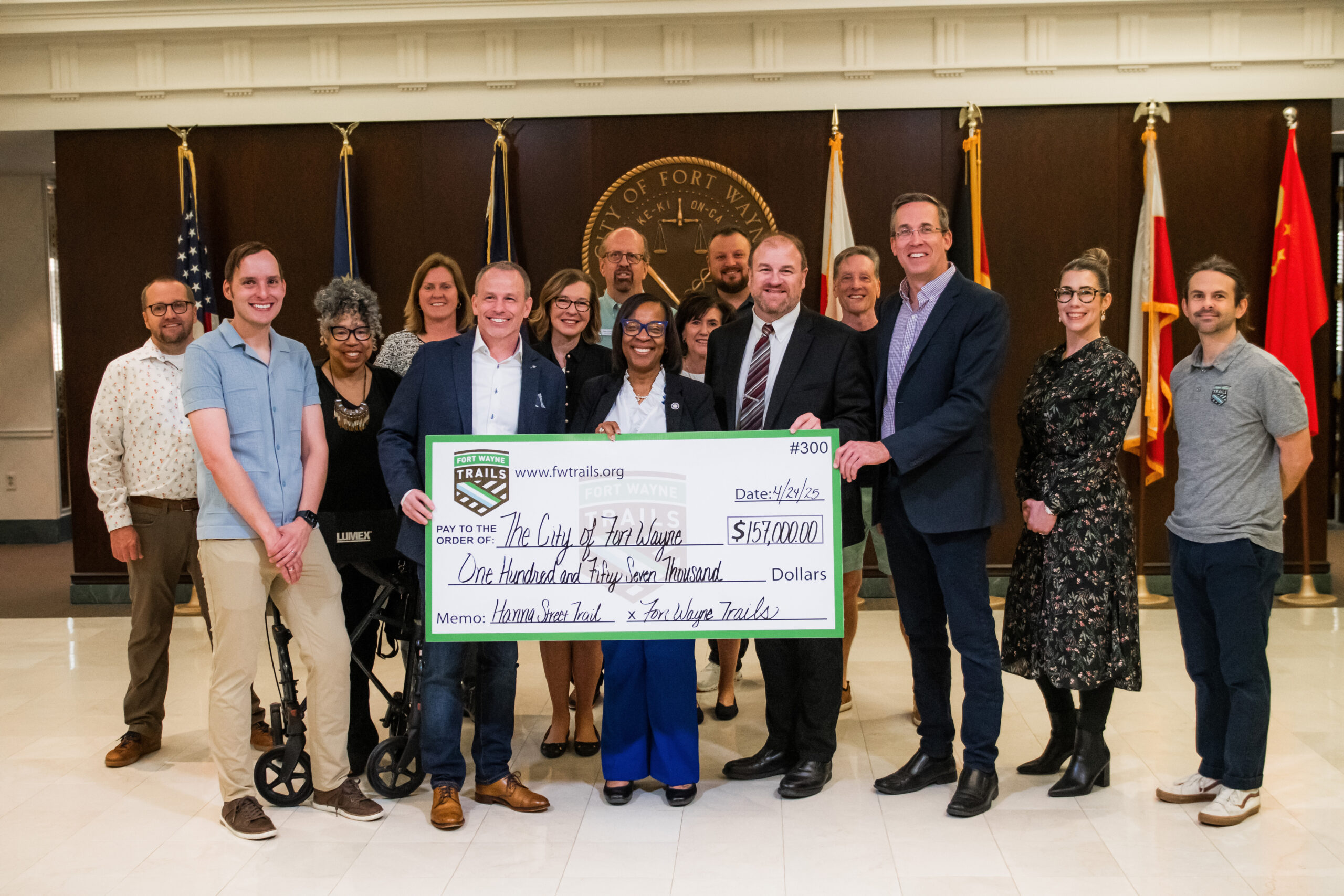 Thanks to the support of our donors, today we presented Mayor Sharon Tucker and the City of Fort Wayne with a check for $157,000 to support the final segment of the Hanna Street Trail from Wallace to Berry streets. The completion of this .75 mile section of trail will create a continuous connection from Tillman Park to Downtown Fort Wayne. The total length of the Hanna Street Trail measures just over 4.5 miles.