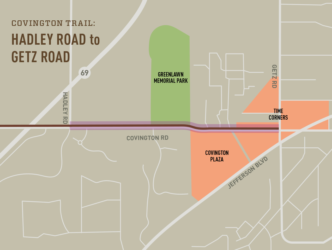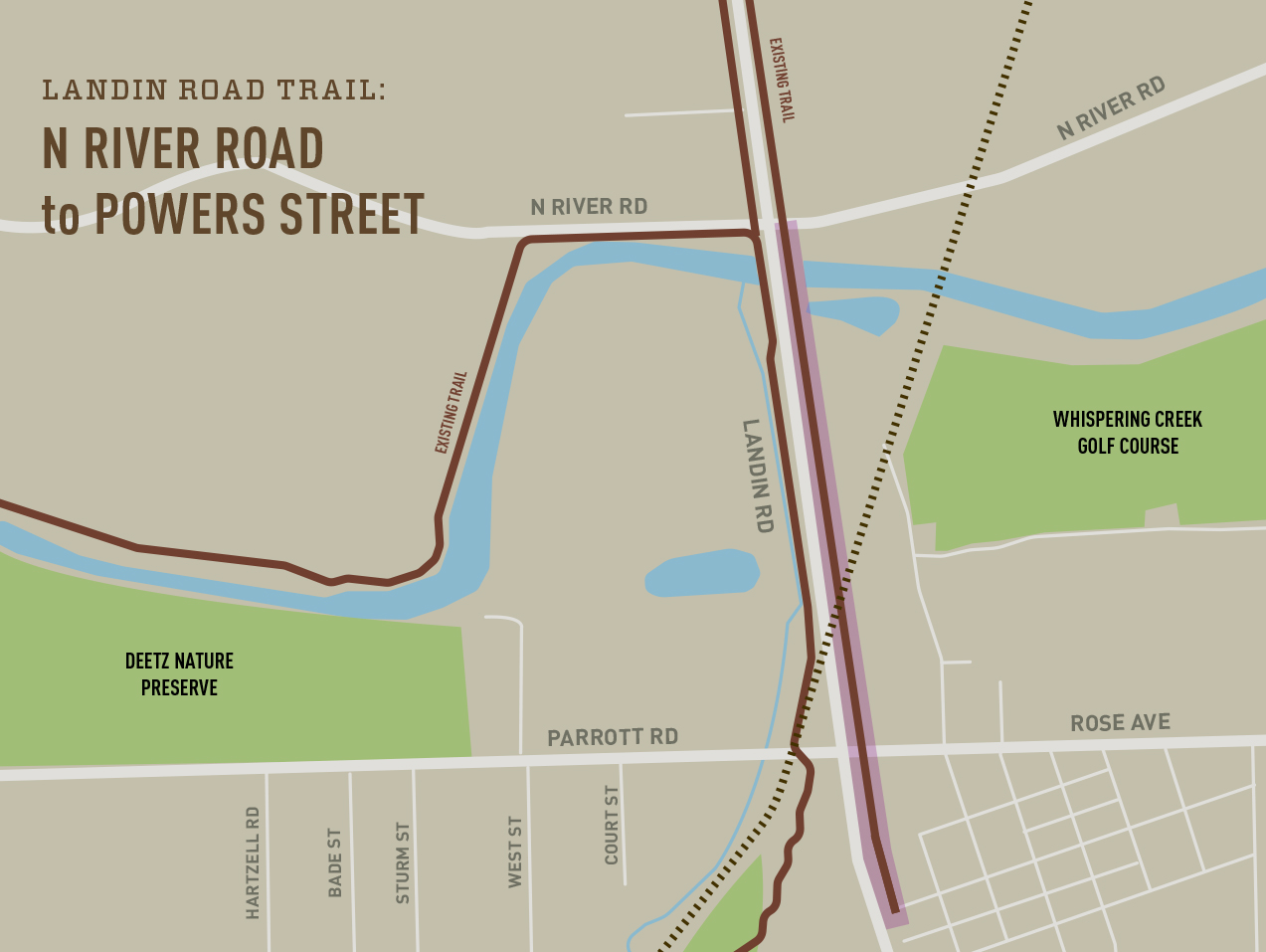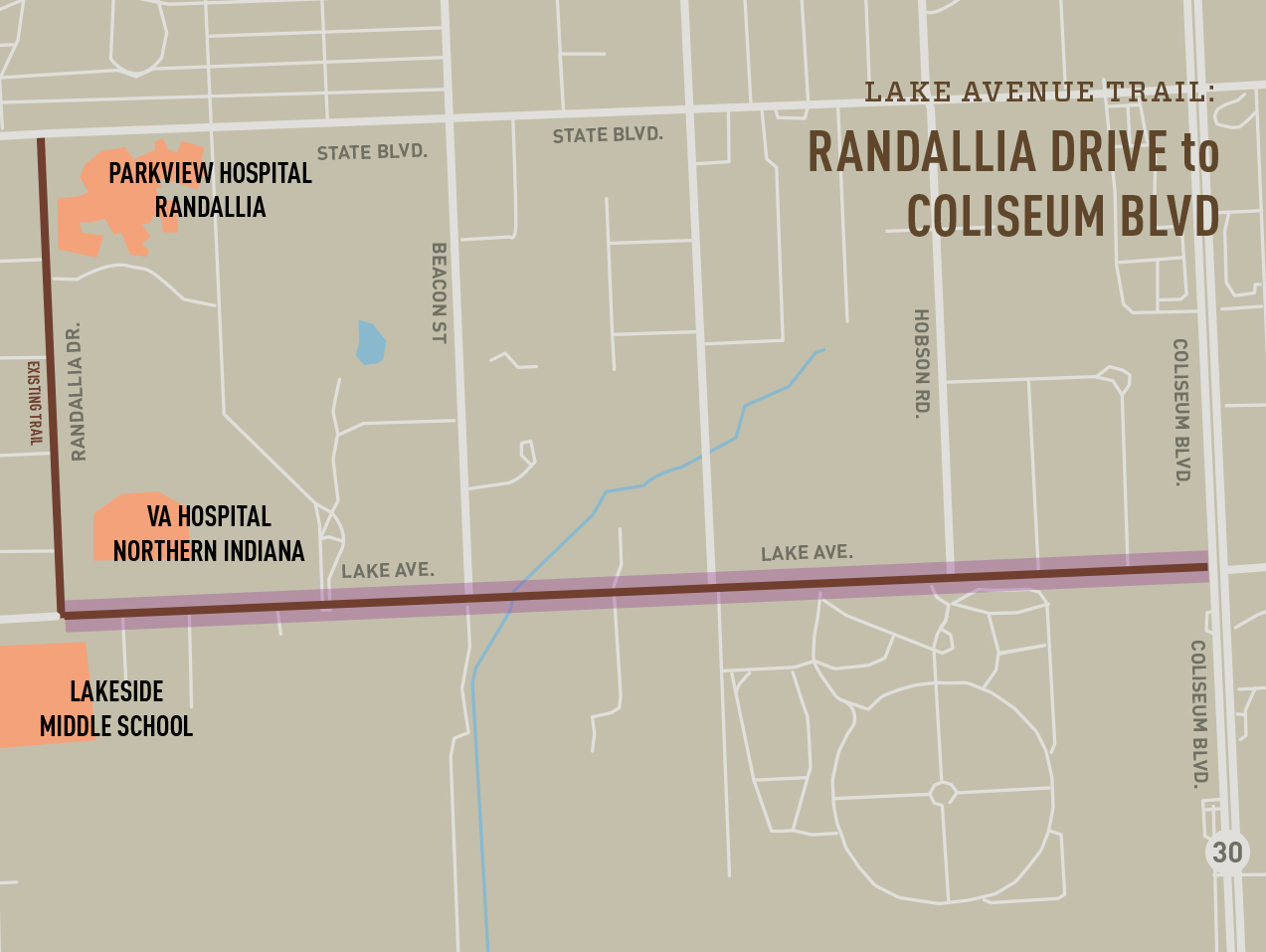 Description: A 10′ wide trail on the east side of Amstutz Rd. will extend from Trading Post Rd. to Hosler Rd. This connects to the Leo Schools’ campuses. The northern section of this trail is a federally-funded project along with the widening of Amstutz Rd.