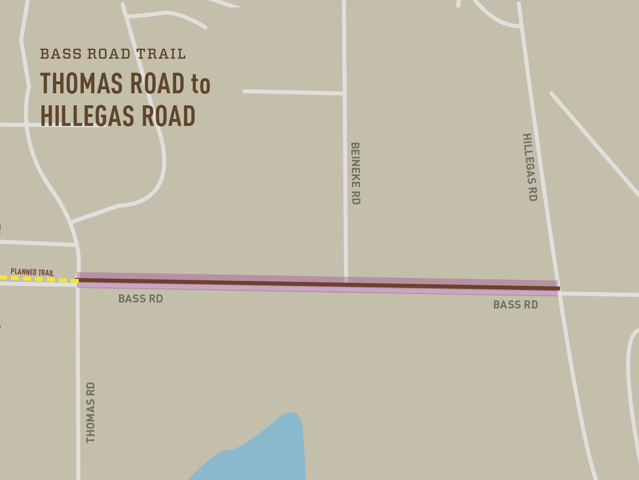 Description: The Allen County Highway Department is building a 10′ wide multi-purpose trail along Bass Road as part of the road-widening project in several phases between 2020 and 2026. Construction has started on this section of trail from Hillegas Rd to N Thomas Rd. This section of trail was completed in November 2021.