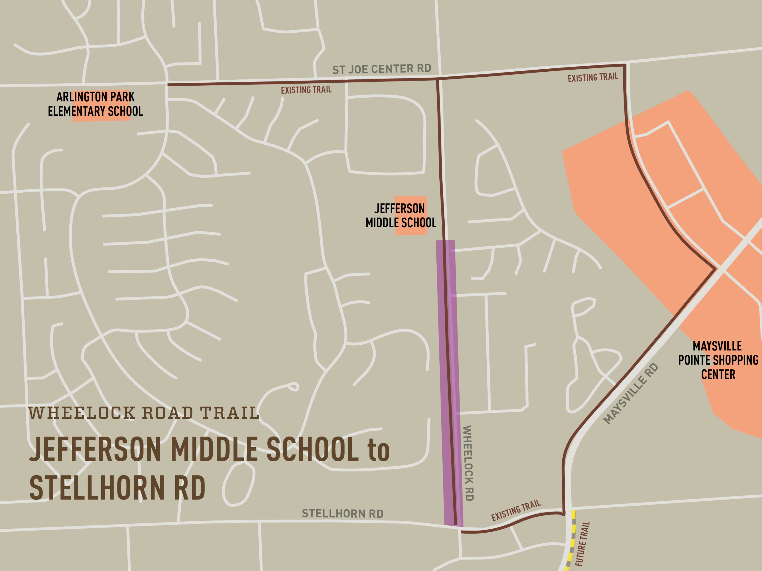 Description: 8ft – 10ft wide asphalt trail on the west side of Wheelock Rd extending from the trail completed in 2020 to the existing trail at Stellhorn Rd and Wheelock Rd.